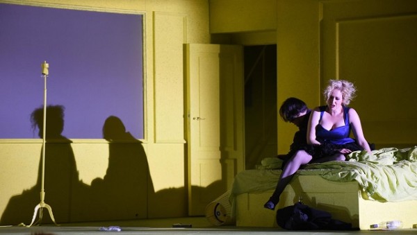 Das Bühnenbild von Raimund Bauer zeigt dazu in kaltes Licht getauchte Vorstadt-Einkaufszentrum-Architektur, deren Wände ganz aus scheußlichem, gelblich-grünem Kunststoff gefertigt sind. Von den beiden Stockwerken des Gebäudes ist der obere Teil fix, während das Erdgeschoß über die Drehbühne immer neue Raumeindrücke freigibt und so geschickt schnelle Szenenwechsel ermöglicht. Das Personal der Oper gehört dem Vorstadt-Prekariat hat. Es scheint ganz so, als hätte sich das Produktionsteam vorgenommen, einen besonders trashigen Ansatz lustvoll bis zur äußersten Konsequenz durchzuspielen. Regisseur Nicolas Brieger präsentiert dazu eine Fülle von Ideen, die man nicht alle mögen muß, die jedoch dafür sorgen, daß an diesem über drei Stunden langen Premierenabend keine Langeweile aufkommt. Brieger versteht sein Regiehandwerk und weiß ein spielfreudiges Ensemble überwiegend junger Sänger gut zu führen.