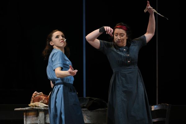 Höhepunkt der Aufführung war das spannende Duett zwischen Suor Angelica und ihrer Tante. Spannend wie ein Thriller umkreisten sich die Sängerinnen. Dann verkroch sich Suor Angelica vor Angst unter dem Tisch, während die Tante den Tisch bestieg und sich selbst überhöhte. Nach deren Todesmeldung von Angelica, geriet Angelica in völlige Apathie. Daher wurde sie von den Mitschwestern gezwungen, das Testament zu unterzeichnen, in dem eine Schwester ihr dabei die Hand führte. Als Strafe zog ihr die Äbtissin mit kalter Wut den Stuhl weg, so dass Angelica zu Boden sank. Das ging unter die Haut.