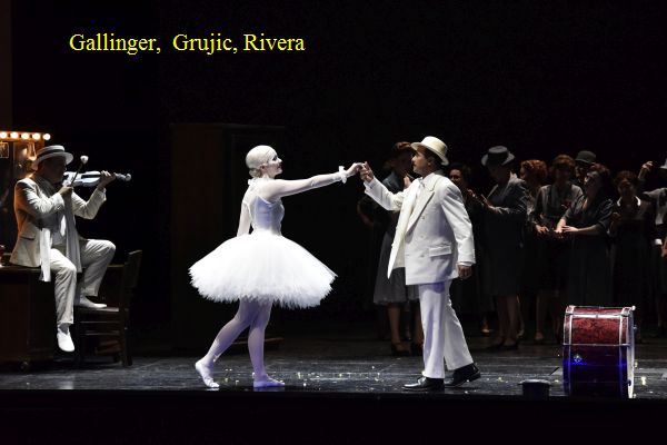 Die Mezzosopranistin Jadwiga Postrozna als Santuzza ist ein Ereignis. Sie lässt ihre große, kraftvolle Stimme vor Leidenschaft beben und beherrscht souverän die Szene. Eine tolle, aufregende Leistung. Tijana Grujic ist da als Nedda filigraner und bezaubert mit einem leichtfüßig genommenen Vogellied. Patrizia Häusermann gibt sich verführerisch und ist in ihrem roten Kleid und mit der roten Rose fast eine Schwester von Carmen. Brigitte Rickmann als Mutter Lucia wirkt wie eine Mahnerin in einer griechischen Tragödie. Marco Antonio Rivera singt den Turiddu und den Canio mit kraftvollem und ausgesprochen schön timbrierten Tenor. Auch Marian Pop verkörpert zwei Figuren, den Alfio und den Tonio. Mit seinem erzenen Bariton gibt er beiden Rollen ein nachhaltiges „Schurkenprofil“.
