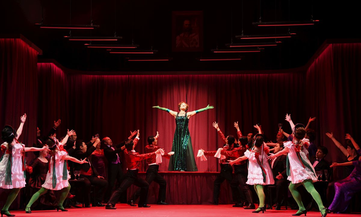 Aber auch die Inszenierung von Sebastian Kranner hat ihre Meriten. Das beginnt mit der opulenten Ausstattung von Anna Kreinecker: Das in plüschigem Rot gehaltene Varieté-Theater, der mittels Tapeten dargestellte Fürstenhof oder die geschmackvollen Kostüme – dem Auge wird durchaus was geboten. Auch die Drehbühne kommt effektvoll zum Einsatz. Und ein besonderer Glanzpunkt ist die ausgefeilte Choreografie von Katharina Glas, in die auch alle Solisten einbezogen werden. Da ist ständig was los auf der Bühne. Kranners Personenführung ist zudem durchweg vergnüglich. Manchmal übertreibt er etwas und auch die Dialoge (vor allem im zweiten Teil) ziehen sich etwas in die Länge, aber insgesamt sorgt diese Csárdásfürstin für beste Unterhaltung.