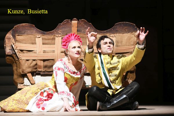 Dass Regensburg ebenfalls Die Herzogin von Chicago im Programm hat, erwies sich als Glücksfall. Denn der Bremerhavener Tenor Christopher Busietta war indisponiert und konnte die Partie des Sándor nicht singen, wohl aber sprechen und spielen. Für den Gesang sprang Mark Adler aus Regensburg ein und rettete so die Premiere. Beide ergänzten sich perfekt: Adler sang mit höhensicherem Tenor und gefühlvollem Ausdruck, etwa bei „Komm in mein kleines Liebesboot“, die umfangreiche Partie von der Seite, während Busietta prächtig agierte und zum Gesang von Adler sogar die Lippen synchron bewegte. Als Mary überzeugt Tijana Grujic mit ihrem hübschen Sopran und sehr attraktiver Ausstrahlung. Ihr in mehrfachen Variationen wiederholtes Lied „Ein kleiner Slowfox mit Mary“ sticht besonders hervor. Victoria Kunze als Prinzessin Rosemarie und MacKenzie Gallinger als James Bondy sind das ebenso sympathische wie spielfreudige Buffopaar. Am Hof von Sándor sorgen John Wesley Zielmann als Finanzminister und Leo Yeun-Ku Chu als Staatsminister für immer neue, slapstickartige Späßchen. Chu gibt zusätzlich einen überzeugenden Zigeunerprimas ab. Vikrant Subramanian ist Sándors Adjutant und auch der leicht debile König Pankraz von Sylvarien. Und der Chor in der Einstudierung von Mario Orlando El Fakih Hernández mischt tänzerisch und gesanglich ordentlich mit.