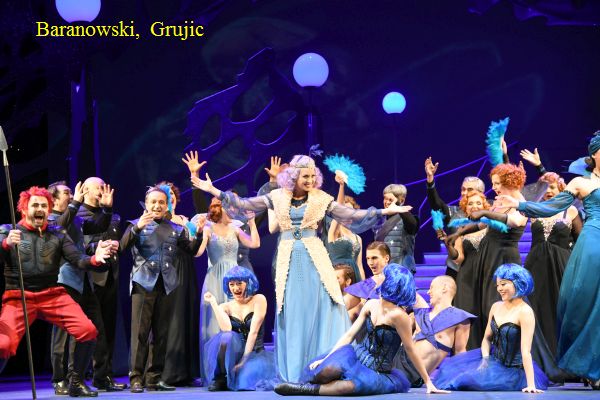 Die Titelpartie wird von Tijana Grujic elegant und verführerisch gestaltet. Das bleibt nicht ohne Wirkung auf Fritz Steppke. Da ist es gut, dass seine Verlobte Marie in Gestalt von Alice Fuder noch gerade rechtzeitig auch auf dem Mond erscheint, um Schlimmeres zu verhindern. Sie hatte ihn ja ohnehin schönstimmig gewarnt: „Schlösser, die im Monde liegen, bringen Kummer, lieber Schatz!“.