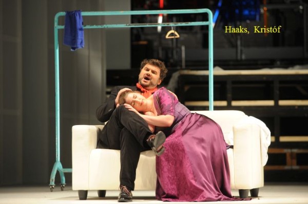 Dass Magda eigentlich eine Kurtisane ist, fällt in der Inszenierung von Philipp Kochheim unter den Tisch. Er hat für die Geschichte eine „zweite Ebene“ eingezogen, indem er die Handlung in einem Opernhaus spielen lässt und wir uns in den Akten zunächst auf einer Konzeptionsprobe, dann auf einer Bühnenprobe und schließlich nach der fiktiven Premiere in der Künstlergarderobe befinden. Der Dichter Prunier fungiert hier als Regisseur, Rambaldo ist der Intendant. Ruggero ist hier ein Tenor, der zum Vorsingen erscheint. Er wird mit der effektvollen Arie „Parigi ė la città die desideri“ eingeführt, die aus der 2. Fassung der „Rondine“ übernommen wurde.