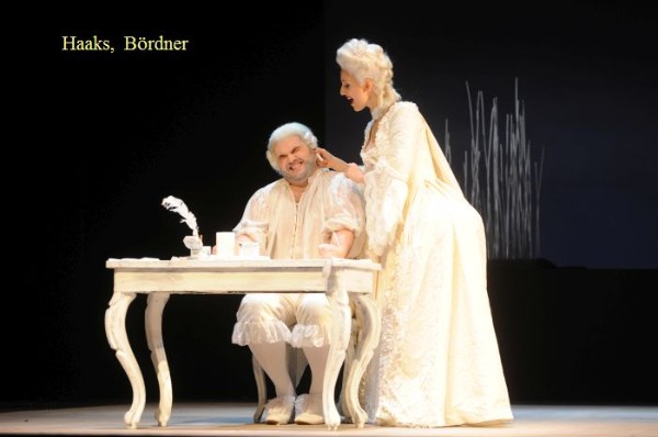 Ganz ausblenden kann Weigner die etwas banaleren Operettenscherze nicht, etwa Maurepas ständige Behauptung „Ich bin schläuer“, das Herumfuchteln mit Banane und Gurke oder die etwas zu lang geratene Anklopfszene. Gleichwohl sichert er seiner Protagonistin Katja Bördner Charme und Persönlichkeit. Bei Bördner ist die Figur der Pompadour eine souveräne Drahtzieherin, die das Leben von der leichten Seite nimmt. Nur als sie auf René verzichten muss, weil der sich als ihr Schwager entpuppt, verliert sie die Contenance. Gesanglich gestaltet sie ihre Partie mit geschmeidigem Sopran ganz hervorragend, ganz besonders ihre gefühlvoll gesungene Einlage. Ihre Zofe Belotte ist bei der quirligen Regine Sturm gut aufgehoben. Tobias Haaks sichert dem René mit virilem Tenor viel Profil und findet nach anfänglichen Schwierigkeiten zu kraftvollem Tenorschmelz. Thomas Burger singt und spielt den Calicot durchweg vergnüglich und übersteht auch die „gefährliche“ Situation beim Duett „Josef, ach Josef, was bist du so keusch“. Carolin Löffler kommt als Schwester der Pompadour mehr zum Sächseln als zum Singen. Oliver Weidinger als König und Schauspieler Peter Wagner als Maurepas sind natürlich die „Trottel vom Dienst“ und sorgen für die unvermeidlichen Scherze.
