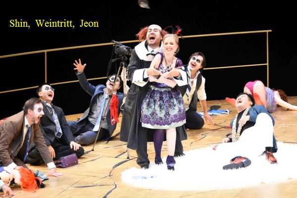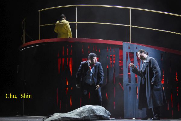 Musikalisch sorgt dieser „Rigoletto“ für ungetrübtes Verdi-Glück. Bremerhaven beschert ein Fest ausdrucksvoller Stimmen. Dae-He Shin, der 2010 zum Sänger des Jahres nominiert wurde, kam gastweise vom Meininger Theater. Er singt den Rigoletto mit erzenem Wohlklang und gestaltet die Partie mit einer reichen Ausdrucksfülle. Seine Arie „Cortigiani“ lässt an Emotionalität und Wucht keine Wünsche offen, ebenso wie das lodernde Racheduett und die vorausgegangene Szene mit Gilda. Die wird von Tijana Grujic mit leuchtendem und sicher geführtem Sopran gestaltet. Die Hoffnungen des jungen Mädchens verdeutlicht sie mit anrührendem Spiel und findet in der letzten Szene zu ätherischen Tönen. Mit Kwonsoo Jeon steht ein jugendlicher, burschikoser Herzog zur Verführung. Bei „Questa e quella“ hat er sich noch nicht ganz warm gesungen, aber das Duett mit Gilda gestaltet er mit sinnlichem Verführungston. Bestens gelungen und mit feiner Differenzierung versehen ist auch „Ella mi fu rapita“, während „La donna e mobile“ noch leichtfüßiger und eleganter denkbar ist.