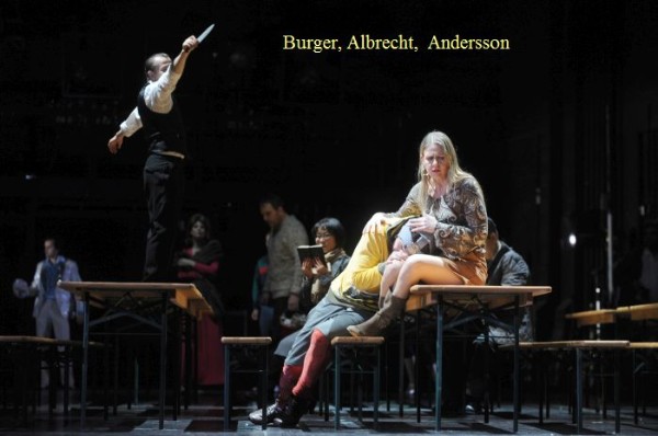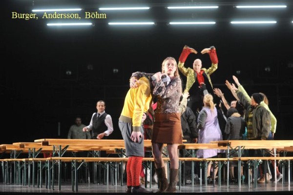 Ein Schicksalskarussell, aus dem es kein Entrinnen gibt. Lehmeier setzt seine Akzente klug und eindringlich. Das Kind (Andrej Albrecht) von Wozzeck und Marie ist behindert, was die Bürde des Außenseiters noch verstärkt. Die Eifersucht Wozzecks wird sehr eindringlich dargestellt und durch den Spott des Hauptmann und des Doktors zur Raserei gesteigert. Am Ende, wenn Wozzeck Marie mit dem Messer getötet hat und selbst ertrunken ist, sitzen alle lethargisch an den Biertischen und halten Smily-Luftballons in der Hand. Ein eindrucksvolles Schlussbild voller Zynismus. Eindrucksvoll ist auch die (bei Berg nicht vorkommende) Szene mit der Erzählung des abgewandelten Sterntaler-Märchens, das hier allerdings ein Gleichnis für totale Hoffnungslosigkeit ist.