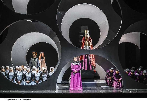 Wieso die beiden Herrscher in einer heroischen Oper, König Karl (Kai Wegner) und König Boland (Young Kwon) so greisenhaft, hinfällig dargestellt werden mussten, entzieht sich meine Kenntnis. Die Personenführung war für meine Begriffe nicht zielführend und der Handlung, respektive Nichthandlung, auch nicht angepasst. Gesamthaft gesehen muss ich bemerken, dass Fierabras in Bern nicht zu den besten Arbeiten Elmar Goerdens gehört.