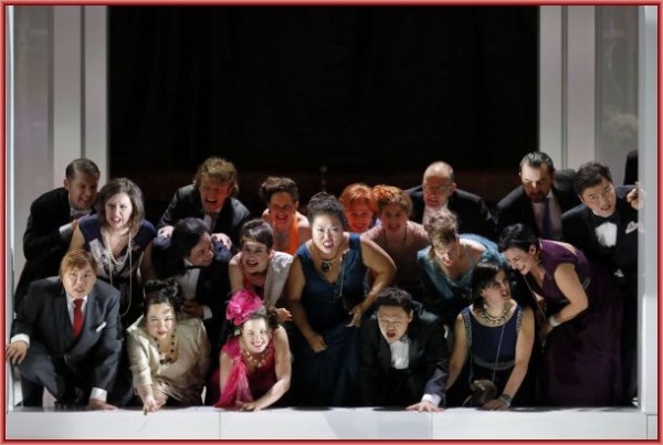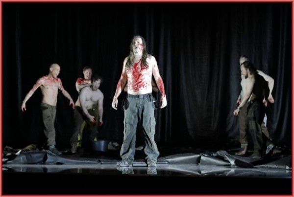 Wenn sie dann am Schluss über die zusammengeraffte Teichfolie zwischen den nun von der Natur wieder zugewucherten und quasi zurückeroberten Säulen der Halle zur Rampe gekrochen kommen, ein Halleluja anstimmen und von der Gnade Heil singen, dabei aber wie Gefangene die Hände nach Erlösung und Verlangen nach Freiheit in den Raum recken, so kommen einem doch berechtigte Zweifel am „seligen Frieden“. Ein paar störende Regieeinfälle sollen aber nicht verschwiegen werden, sie wiederholen sich bei Calixto Bieito leider in seinen eigentlich sehr genau konzipierten Inszenierungen immer wieder: Im dritten Akt rauscht zu Beginn 20 Minuten lang (akustisch störend) Wasser vom Bühnenhimmel zu Boden, nur mit dem Zweck, eine Pfütze zu haben, in welcher dann der von Elisabeth zurückgestossene Wolfram buchstäblich baden gehen kann. Auch das Finale II wird einmal mehr durch Bühnengeräusche „versaut“: Die Minnesänger schlagen mit Eichenlaub unaufhörlich und überaus laut auf Tannhäuser ein, kasteien und erniedrigen den in der Pose des Gekreuzigten (auch diese Pose hat man schon zu oft gesehen) an der Rampe stehenden Heinrich. Für mich ist diese Missachtung der Musik (wie in Bieitos Inszenierung von DER FLIEGENDE HOLLÄNDER in Stuttgart) ein absolutes No-go. Und sehr gerne würde ich einmal eine Inszenierung von Bieito sehen, in der Männer nicht nur Schweine sind, sondern auch positive Identifikationsfiguren darstellen können. So schlecht sind wir doch nicht (alle) … .
