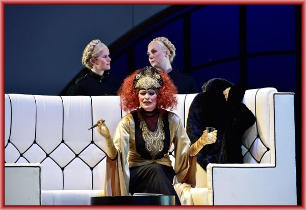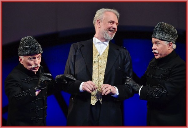 Hier hat es der erste aus der „normalen Besetzung“ stammende Künstler etwas leichter. Matthias Winter, der den unglücklich verliebten Basil Basilowitsch gibt, ist stimmlich dem Orchester gewachsen. Der gepflegte stimmschöne ausdrucksstarke und durchschlagskräftige Bariton überzeugt in jeder Weise, sowohl stimmlich als auch darstellerisch und hat das Herz des Publikums eigentlich in Windeseile erobert – leider nicht das Herz seiner geliebten Angéle. Dafür bekommt er, ein bisschen gegen seinen Willen, seine langjährige Verfolgerin, die Gräfin Stasa Kokozow, die von der Vollblutschauspielerin Sylvia Schramm-Heilfort gegeben wird, die auch mit rauchiger Stimme und unter großem Applaus ihr Couplet zum Besten gibt. Mit einer sehr guten Leistung sind mir auch noch Jürgen Mutze als Sergei Mentschikoff und Edward Randall als Pawel von Pawlowitsch aufgefallen. Bei den übrigen Mitstreitern gab es keinen Ausfall und dies will auch schon etwas heißen.
