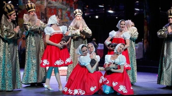 Sopran auf und kann selbst da überzeugen, wo sie im Liebesduett den albernen schwulen Soldaten streicheln muss. Das Buffopaar, Frank Ernst als Iwan und Jeannette Oswald, macht seine Sache ausgezeichnet. Er mit hellem, sicheren Buffotenor und sie, auch ganz reizend anzusehen, mit weichem silberhellen und warmem Sopran, überzeugen nicht nur gesanglich sondern wirbeln auch in den Tanzeinlagen über die Bühne, das es eine wahre Freude ist. Wie gut aufgestellt die Staatsoperette Dresden ist, zeigt sich auch daran, dass eine ihre wichtigsten Stützen, und vor kurzem erst eine ganz tolle lustige Witwe singend, nämlich Ingeborg Schöpf sich in der Wurzenrolle einer – nur ein paar wenige Worte sprechend – Fürstin einbringt. Es gibt keine Ausfälle im Ensemble, wobei ich auf den „Hauptdarsteller“ Soldat und Putin-Zar gerne hätte verzichten können. Dem Publikum jedenfalls hat es gefallen und es applaudiert lange und ausdauernd. Ein Abend, der neben wunderschönen musikalischen Momenten leider auch einige inszenatorische Probleme hat – aber das ist halt meine ganz subjektive Meinung.