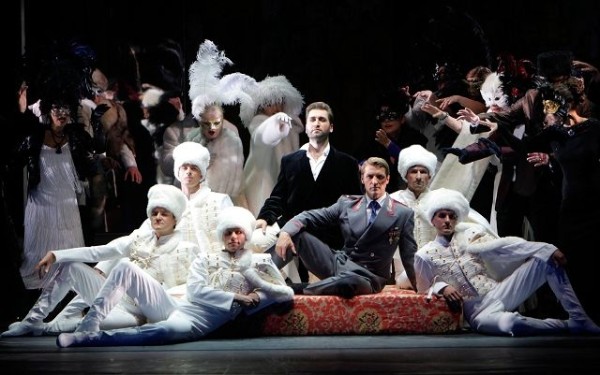 Peinlich und völlig deplatziert ist die Figur des schwulen Soldaten der zu einer stummen Hauptrolle wird und mich wirklich ratlos zurücklässt. Das Ganze ergibt keinerlei Sinn und es ist für mich auch in keinster Weise nachvollziehbar, dass diese Inszenierung vom Bayerischen Rundfunk mit dem „Operetten-Frosch“ ausgezeichnet worden war. Dass ein nachgemachter Putin, dessen Bild überall prangt und der als der (alte) Zar einen Monolog zur Lage der Nation sprechen darf bzw. leider muss, für eine Operette völlig unsinnig und für mich auch lächerlich, ist ein weiterer Sargnagel auf der Inszenierung des Zarewitsch. Will der Regisseur hier Putin veralbern, die russische Politik anprangern? So ein Unsinn gehört auch nicht in das modernisierte Bild einer Operette. Lehmeier geht davon aus, dass Zarewitsch und Sonja eben nicht ineinander verliebt sind, und dies ist für mich ein weiterer Trugschluss. Eines aber hat auch dieser Meisterregisseur nicht geschafft, die wundervolle Musik von Franzl Lehár zu verunstalten und diese reißt für mich die Operette wieder nach oben, ich muss halt manchmal die Augen zumachen um so manchen inszenatorischen Unsinn nicht mitverfolgen zu müssen. Ich möchte noch einmal betonen, dass die Idee des Schwulseins durchaus seine Berechtigung hat, in dem Moment aber Makulatur ist, als der Zarewitsch die Liebe zu Sonja erkennt. Ab dann wirkt alles auf mich nur noch lächerlich. Entschuldigung lieber Bayerischer Rundfunk, dafür, dass Du ja in Deinem Programm fast keine (oder gar keine?) Operetten mehr anbietest, hast Du mit dem „Operetten-Frosch“ ganz schön danebengegriffen. Es tut mir leid, dass ich dies so umfassend versuche zu erläutern, aber ich war an diesem Abend wirklich böse, böse darauf, wie man eine – zugegeben etwas zuckriger -Operette zur eigenen Befriedigung verunstaltet und – aus meiner Sicht – der Lächerlichkeit preisgibt.