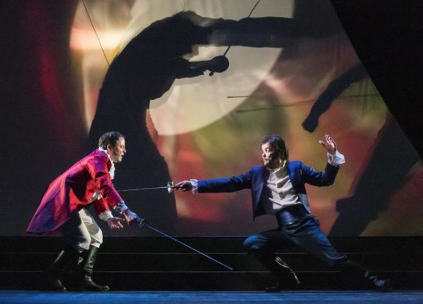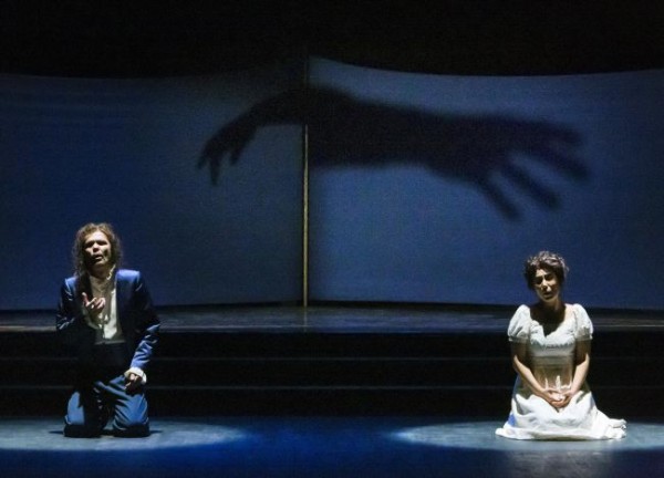So weit schön und gut. Dieses psychologische Konzept war überzeugend und traf meinen Geschmack durchaus. Wenn der Abend von der Inszenierung her dennoch nicht vollständig zu überzeugen vermochte, lag das daran, dass der Focus zu sehr auf den von Cora De Maria geschaffenen Schattenprofilen lag und dabei die eigentliche Personenregie oft stark ins Hintertreffen geriet. Diese war insgesamt nicht gerade ausgeprägt und wurde auch an den Stellen nicht sonderlich intensiviert, an denen die Schatten gerade mal pausierten. Häufig wurde von den Protagonisten, die sich darüber hinaus häufig in altbackenen Sängergesten gefielen, pures Rampensingen gepflegt, was nicht nur einmal gähnende Langweile zur Folge hatte. Insoweit hinterließ die Inszenierung einen recht zwiespältigen Eindruck.