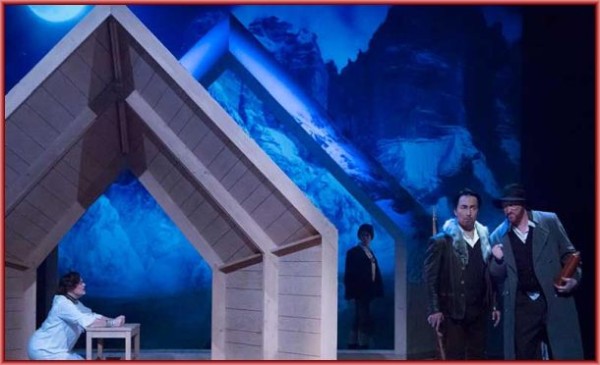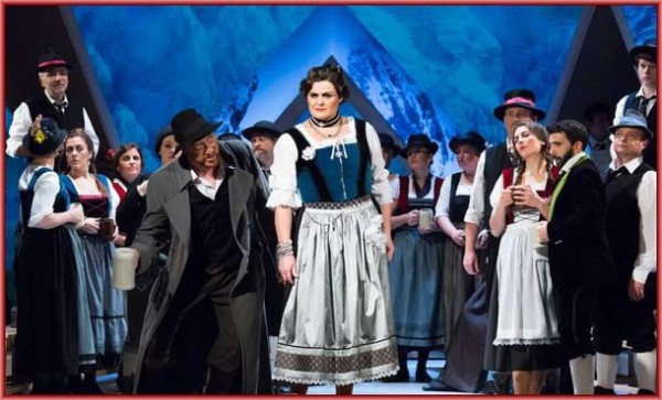 Ensemblemitglied Jeffrey Nardone zeigt den Jäger nuanciert, glänzt mit metallischer Höhe (die er dem Publikum nur am Ende des Finalaktes vorenthält), feinen Piani und viel, viel Gefühl. Da kann man als Zuschauer gut nachvollziehen, dass die Wally ihm verfällt und sich nur zu gern von ihm aus ewigem Eis vor einen warmen Ofen retten lassen würde. Noch mehr überzeugt hat mich gestern sein Gegenspieler Gellner, der in Kyung Chun Kim einen idealen Interpreten findet. Sein samtiger Bariton ist durchaus zu gewaltigen Ausbrüchen fähig und so brilliert der Südkoreaner auf ganzer Linie zwischen hoffnungsvollem Sehnen und brachialer Gewalt. Einen Geier gibt es in Catalanis "Wally" nicht, aber einen jugendlichen Freund der Titelheldin, Walter. Die Hosenrolle wird von Ensemblemitglied Emily Fultz bravourös gemeistert, die junge Koleratura zeigt begeisternde Höhe und Geläufigkeit und ist auch darstellerisch eine Wucht. Kimberley Boettger-Soller verfügt über einen warmen, seelenvollen Mezzo und zeigt ansteckende Spielfreude. Da bedauert man regelrecht, dass die Rolle der Afra so klein ist. Marc Kugel zeigt als Landstreicher seinen kraftvollen Bass-Bariton ebenso wie komödiantisches Talent, Szymon Chojnacki als Wallys despotischer Vater singt tadellos und beeindruckend, spielt den Tyrannen allerdings ein wenig brav.