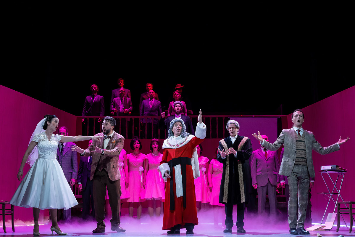 Es geht sehr gut zusammen – denn im Landestheater Niederbayern, d.h.: im wunderschönen Fürstbischöflichen Opernhaus, hat man Gilbert & Sullivans Trial by Jury von 1875 und Puccinis Gianni Schicchi von 1918 sinnvoll miteinander verkuppelt: zwei juristische Komödien, zwei Meisterwerke. Der regieführende Intendant Stefan Tilch fragt zu Recht, ob einem auf den Bühnen schon einmal diese beiden Einakter an einem Abend begegnet seien. Sind sie nicht, Euer Ehren. Und also schauen wir auf zwei sehr komische wie tiefsinnige „Gerichts“-, genauer: „Justizdramen“, in denen es sich hier – bei den Engländern – um eine Sozialsatire, dort – bei den Italienern – um eine menschlich grundierte Spitzbubenkomödie handelt. In beiden cases werden die Beziehungen eines Mannes zu einer Frau verhandelt: In Trial by Jury weigert sich ein Mann, ein Ehegelöbnis einzuhalten, bevor der Richter selbst das Problem löst, indem er die Frau heiratet, in Gianni Schicchi stünde die Liebe eines jungen Paares auf dem Spiel, wenn sich die Titelfigur nicht einen genialen Trick einfallen ließe, um ein Testament zu fälschen. In beiden Fällen herrscht beim Kollektiv der Geschworenen bzw. der Hinterbliebenen eine exzellente Doppelmoral in Bezug auf das, was man als „bürgerliche Moral“ zu bezeichnen pflegt. Hier wie dort entlarven sich die Geschworenen, der Eheversprechenbrecher, die geldgierige Frau und der Richter wie die schließlich weinenden Erben und der Testamentsfälscher als unverstellt egoistische Figuren – nur, dass man bei Gianni Schicchi weiß, für wen er letzten Endes den Betrug begeht, auch wenn er weiß, dass Laurettas Ankündigung, im Fall des Falles in den Arno zu springen, nur eine List ist. In der Dramatic Cantata wie in der Opera geht es musikalisch schnell und vollsaftig daher. Nicht wenige Gilbert & Sullivan-Kenner halten Trial by Jury (die zweite Operette von Gilbert & Sullivan) für das beste Werk des Autorenteams, ja: für die erfolgreichste britische Kurzoperette. Gianni Schicchi gilt als eine der besten Opernkomödien ever. Grund genug also, die beiden Stücke zu verbinden, wenn man nicht, wie ursprünglich angedacht, das Trittico inszenieren kann; dafür ist das kleine Opernhaus am Inn leider nicht finanzkräftig genug.