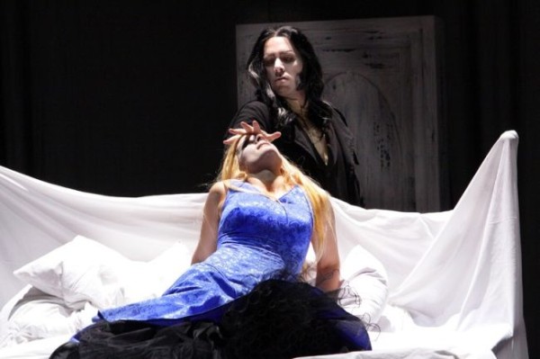 Gesungen wurde in der nicht immer überzeugenden deutschen Übertragung von Saskia M. Wesnigk. Von den Sängern gebührte die Krone dem jungen Aykan Aydin, der mit hellem, tenoral anmutendem und dabei bestens focussiertem Bariton italienischer Schulung einen ausgezeichneten William sang. Gut gefiel auch die sich immer weiter fortentwickelnde Franziska Tiedtke, die für die Madeline einen gut sitzenden, beweglichen und höhensicheren Sopran mitbrachte. Dagegen fiel Markus Francke mit seinem flachen, der nötigen Körperstüzte gänzlich entbehrenden Tenor in der Partie des Roderick Usher ab. Sehr dünn klang auch der Arzt von Benjamin-Edouard Savoie. Ihm überlegen war der tadellos singende Diener von Axel Humbert.