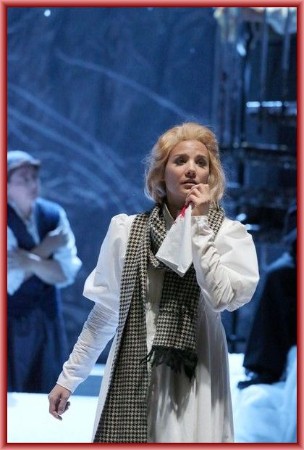 Rodolfo ist bei Frau Nicklich ein großes Kind, das mit der Situation nicht wirklich zurechtkommt. Mimi bedeutet für ihn so etwas wie eine Muse. Sie ist trotz ihrer Krankheit die treibende Kraft in der Beziehung. Von Anfang an steht sie, kaum sichtbar, am oberen Ende der Wendeltreppe und beobachtet das Treiben der Männer. Das ist eine Frau, die ganz genau weiß, was sie will. Sie bläst selbst die Kerze aus und setzt alles daran, Rodolfo nach allen Regeln der Kunst zu verführen, was diesen sehr irritiert. Mimi ist sich bewusst, dass ihr Leben nicht mehr allzu lange währen wird und sucht jemanden, der ihr in ihrer schlimmen Krankheit zur Seite steht. Diese Aufgabe weist sie Rodolfo zu. Obwohl zwischen den beiden jungen Leuten eine heftige Liebe entbrennt, erreichen sie ihre jeweiligen Ziele nicht. Letztlich sind sowohl Mimi als auch Rodolfo unfähig, dem jeweils anderen zu helfen. Die Hoffnung, die die junge Frau anscheinend noch hegt, ist zum Scheitern verurteilt. Dennoch nimmt sie ihr Leben, solange es ihr noch möglich ist, selbst in die Hand. Im vierten Bild kehrt sie im Brautschleier in die Mansarde zurück. Drauf und dran, ihren neuen Liebhaber zu ehelichen, hat sie diesen wohl kurzerhand vor dem Traualtar stehen lassen und wendet sich wieder Rodolfo zu – ein sehr poetisches Bild.