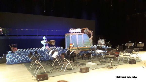 So sollte es bei der Eröffnungspremiere aussehen – allerdings machte das Wetter die Freiluftaufführung unmöglich und man musste vom Barockhof des Schlosses Eggenberg in die nüchtern-abstrakte Helmut-List-Halle ausweichen. Da sah es so aus: