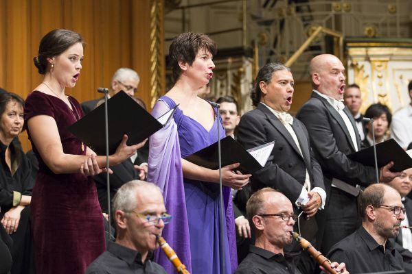 Im Solistenquartett hatte Genia Kühmeier wegen Erkrankung sehr kurzfristig abgesagt. Die junge Schweizerin Regula Mühlemann übernahm innerhalb eines Tages die Sopranpartie.- Wie man auf diesem Kurzvideo sieht, musste die Hauptprobe noch ohne Sopran auskommen. Mühlemann hat dann ihren Part mit klarer und sicher sitzender Stimme sehr schön bewältigt. Elisabeth Kulman (die ja ursprünglich aus dem Schönberg-Chor hervorgegangen ist, vor dem sie nun stand) schaffte es mit dieser nicht gerade dankbaren Partie, der zentrale und souveräne Ruhepunkt des Solistenquartetts zu sein. Wieviele große Abende verbindet man doch in dankbarem Erinnern mit ihr und Nikolaus Harnoncourt! Der australische Tenor Steve Davislim war ein höhensicherer, himmelstürmender Held und Florian Boesch ein wortdeutlich uns alle markig aufrufender Bariton. Überragend war der – durch Jahrzehnte mit Nikolaus Harnoncourt und der Styriarte verbundene – Arnold-Schoenberg-Chor (Einstudierung: Erwin Ortner). Er sang seinen Part auswendig – das habe ich noch von keinem anderen Chor erlebt! – mit stets plastischer Phrasierung und Textgestaltung. Und dem Chor gelang es, im Schlussteil auch den Dirigenten (der übrigens als junger Student im Wiener Singverein Chorerfahrung gesammelt hatte) ein wenig „einzubremsen“. Das Finale gelang strahlend und im idealen Ebenmaß zwischen Chor, Solisten und Orchester.