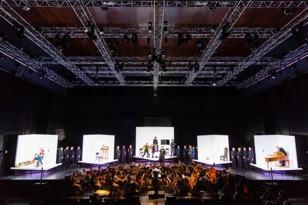 Die Grazer Listhalle ist kein Opernhaus – die diesjährige Opernproduktion der Styriarte wird daher von Regisseur Peter Boysen ausdrücklich als „szenisches Arrangement“ bezeichnet. In einem Interview erklärte er, wie die fünf kleinen Guckkastenbühnen, die er auf dem Konzertpodium aufbauen ließ, zu verstehen sind: die fünf Hauptpersonen sollen darin „einen eigenen Raum“, „sozusagen ihr Nest“ haben. Aber bevor ich auf dieses „szenische Arrangement“ näher eingehe, einige Worte zur Fassung, die man gewählt hatte: