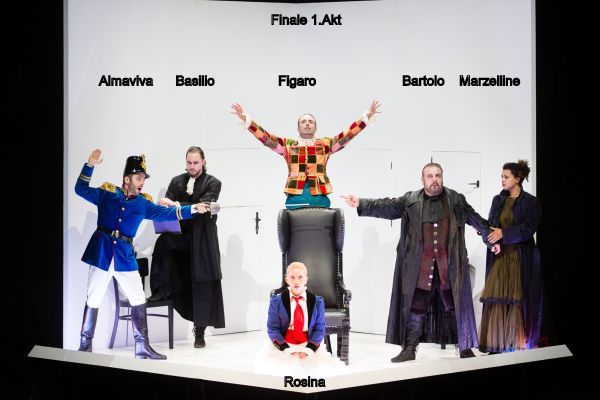 Allen Solisten ist jedenfalls größtes Bemühen um Textdeutlichkeit zu attestieren – dennoch: die Beliebtheit der Rossini-Buffa beruht seit bald 200 Jahren nicht auf dem Text, sondern auf den köstlichen Gesangsnummern – der musikalisch geradezu elektrisierende Auftritt des Figaro und die Kavatine der Rosina bestechen durch ihre sprühende Lebendigkeit und durch ihre virtuosen Gesangsanforderungen. Rossinis untrüglicher Sinn für Humor etwa in Basilios Verleumdungsarie oder in Bartolos großer Szene vermittelt sich unmittelbar aus der Musik und ihren grandiosen Steigerungen. Und diese Effekte eines in Achteln und Sechzehnteln dahinplappernden Rossini-Brios sind einfach im italienischen Originaltext besser und überzeugender zu gestalten als in der konsonantenreichen deutschen Sprache. Auf diese Schwierigkeit haben die Sänger im Video aus der Probenphase überzeugend hingewiesen. Und zu guter Letzt: trotz großen Bemühens blieb die Textverständlichkeit gering. Mein Résumé zur Frage Originalsprache versus Landessprache: der Arbeitsaufwand hat sich nicht gelohnt- ich habe den gerade bei Rossini unverzichtbaren italienischen Sprach-und Musikduktus schmerzlich vermisst. So bleibt diese Fassung für mich das, was die Verantwortlichen der Produktion eigentlich laut Programmheft vermeiden wollten: „ein Museumsstück“!