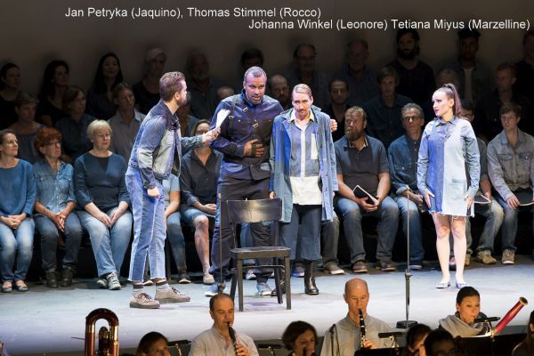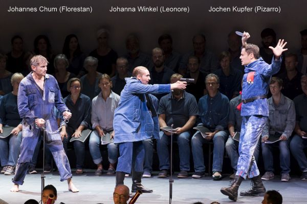 Das Solistenteam gestaltete seine Partien mit merkbarer innerer Beteiligung. Johanna Winkel ließ sich zwar wegen Indisposition entschuldigen, war aber dennoch eine ausgezeichnete Leonore mit schlanker Stimmführung und überzeugender Ausstrahlung. Tetiana Miyus war eine exzellente Besetzung für die Marzelline, Thomas Stimmel ein Rocco mit großer Wortdeutlichkeit und lyrischer, ein wenig einförmiger, nicht allzu großer Bassstimme. Jochen Kupfer (Pizarro) dominierte mit großem Stimmvolumen die Szene und man verzieh ihm dank seiner Intensität den verfrühten Einsatz im Quartett des 4. Aktes.