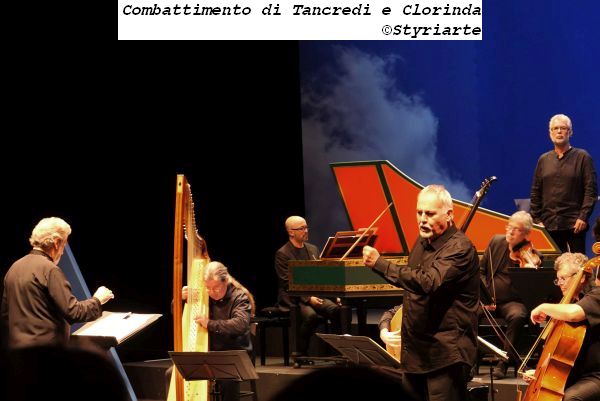 Ein Bespiel dafür ist der seit bald 35 Jahren auf den ersten Bühnen der Alten Musik stehende italienische Bariton Furio Zanasi , der auch diesmal als Testo (Erzähler) in Il combattimento di Tancredi e Clorinda den Text von Torquato Tasso (selbstverständlich auswendig!) rezitierte. Dies war wahrhaft Musiktheater auf höchstem Niveau, das sich auf wenige andeutende Gesten beschränken konnte, weil sich die gesamte Dramatik der Szene durch exzeptionelle Stimmkunst vermittelte. Text und Musik waren hier ideal miteinander verbunden. Da erlebte man gleichsam atemlos, wie sich Text und Musik zur Oper entwickeln. Ich habe Furio Zanasi wiederholt erlebt – jedesmal ist er für mich packend und neu. Großartig! Das Orchester musizierte ebenso hervorragend – stellvertretend seien für das exzellente Instrumentalensemble die erfahrenen Orchesterstützen Manfredo Kraemer (Violine I) und Andrew Lawrence-King an der Doppelharfe genannt. Und Jordi Savall koordinierte das Ganze mit sparsamen, uneitlen und stets den Gesamtzusammenhang wahrnehmden Gesten. Es sei nochmals gesagt: das war höchste Kunst – da erlebte man neuerlich ein musikdramatisches Wunder, das unmittelbar packte und vergass darüber, dass man Monteverdi in dieser Besetzung in den letzten Jahren schon wiederholt in Graz erlebt hatte – wie auch Mathis Huber in seiner Einführung gesagt hatte! Und mit dem Monteverdi-Abend schloss sich auch insoferne der Kreis der Styriarte 2022, hatte doch zu Beginn in der Fux-Oper Monica Piccinini die Venus und nun so wie vor vier Jahren an diesem Abend ganz wunderbar elegisch das Lamento della Ninfa interpretiert.