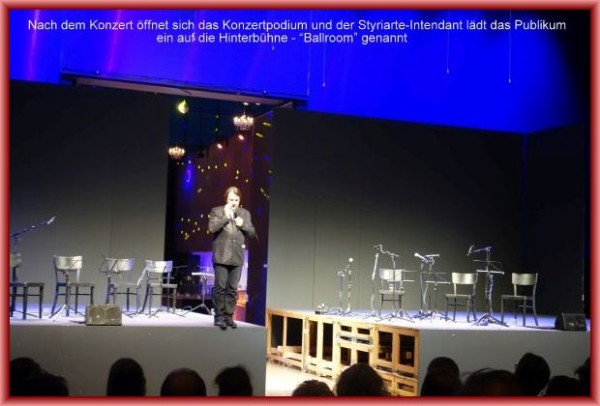 Nach der konsequent durchgehaltenen Konzentration haben sich dann letztlich doch die westlichen Konzertgewohnheiten durchgesetzt – eine Zugabe musste sein, auch wenn sie nicht zum streng rituellen Ablauf des religiösen musikalisch-tänzerischen Programms passte. Sie war aber eben die Verbindung zwischen zwei Welten, die dem Ensemble ein grundsätzliches Anliegen ist. Und in diesem Sinne mag man auch akzeptieren, dass sich nach dem Ende der Zugabe das Podium öffnete und der Styriarte-Intendant das Publikum auf die Hinterbühne einlud – zur „Tanz-Party im Ballroom zum Mittanzen nach Belieben“ (so der Wortlaut im Programm)