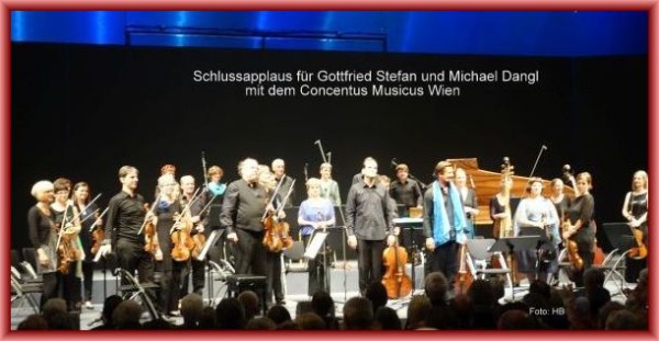Natürlich denken alle im Publikum – darunter auch seine anwesenden drei Brüder – an Nikolaus Harnoncourt. Er fehlt uns allen unendlich – aber er freut sich bestimmt über das unprätentiöse Dirigieren des jungen Stefan Gottfried, der nun den Concentus Musicus Wien gemeinsam mit dem Konzertmeister Erich Höbarth und der Geigerin Andrea Bischof kollegial leitet. Auch bei diesem Konzert jubelte das Publikum in der ausverkauften Halle und wurde mit der Wiederholung eines Telemann-Satzes belohnt.