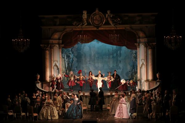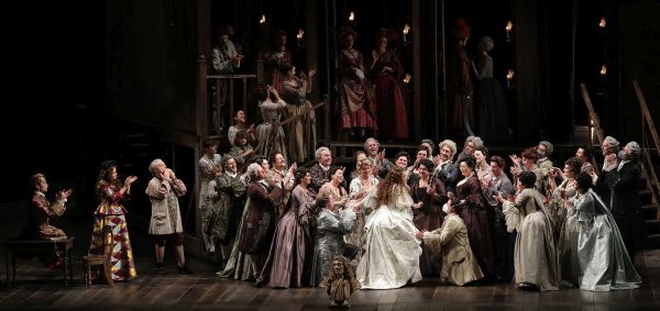 Francesco Cileas Oper wurde als bisher letzte Station in der international bekannten Koproduktion der Opernhäuser von London, Barcelona, Wien, Paris und San Francisco gezeigt, in der Regisseur David McVicar einmal mehr bewiesen hat, dass eine textgetreue, nicht in andere, meist moderne, Epochen verschobene Regie ein Werk in seinem ganzen Zauber wiedergibt, ohne altmodisch oder gar staubig zu wirken. Das geniale Bühnenbild von Charles Edwards, dessen Herz die Bühne der Comédie Française ist, hat seinen starken Anteil an der Intensität des Geschehens ebenso wie die Kostüme von Brigitte Reifenstuel. Originalbeleuchtung und -choreographie von Adam Silverman bzw. Andrew George wurden von Marco Filibeck bzw. Adam Putney getreulich umgesetzt. Darüber wachte Justin Way als jahrelanger Mitarbeiter McVicars. Ich hatte den Eindruck, dass bis ins kleinste Detail gearbeitet worden war und die immerhin aus 2010 stammende Inszenierung frisch wie am Tag ihrer Premiere erschien.