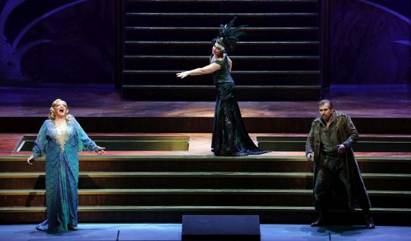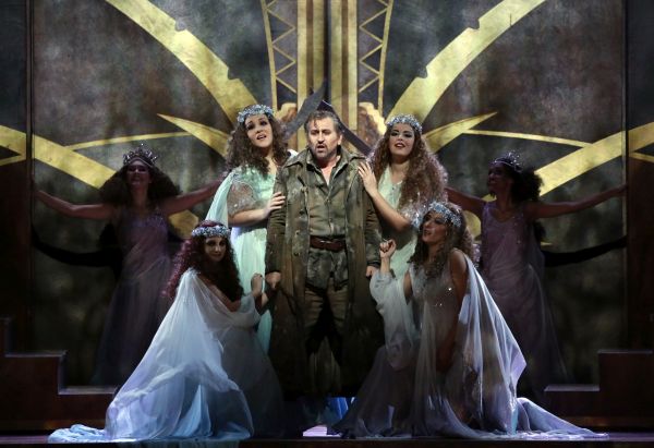 Nach seiner eher enttäuschenden „Ariadne“ im Frühjahr zeigte sich Franz Welser-Möst diesmal von seiner besten Seite und führte das Orchester des Hauses in rauschhaft tönende Welten, die von den Musikern ausgezeichnet bewältigt wurden. Die Titelrolle sang Ricarda Merbeth mit üppiger Tongebung und absolut furchtlos. Die zahlreichen Spitzentöne waren von überwältigender Sicherheit und niemals schrill. Es wäre wohl vermessen, von der Künstlerin auch noch persönliches Charisma zu verlangen. Neben ihr als Menelas Andreas Schager, der seinem Ruf wahrlich alle Ehre machte. Die Tessitura der Rolle ähnelt der des Kaisers in der „Frau ohne Schatten“, doch ist die Partie wesentlich länger. Strauss verlangt hier schier das Unmögliche, aber Schager machte es möglich. Als Aithra kam Eva Mei trotz ihrer doch zarteren stimmlichen Mittel mit Hilfe ihrer Technik gut über die Orchesterfluten und sah dazu bezaubernd aus. Nicht klar ist mir, warum Thomas Hampson die nicht nur kurze, sondern auch undankbare Rolle des Altair angenommen hat, die psychologisch nichts hergibt, denn gesanglich war er matt, und die Stimme klang stumpf. In den kurzen Auftritten des Da-ud erwies sich Attilio Glaser als vielversprechender Spintotenor. Die Engländerin Claudia Huckle war der für einen tiefen Alt (ähnlich der Gaea in „Daphne“) geschriebenen allwissenden Muschel stimmlich in keiner Weise gewachsen. Als Dienerinnen der Aithra und Elfen konnten Mitlieder der Accademia della Scala Erfahrung sammeln. Aus der Accademia kam auch Caterina Maria Sala, die als Hermione ihren einzigen Satz, „Vater, wo ist meine schöne Mutter?“, ohne offensichtliches Lampenfieber beisteuerte.