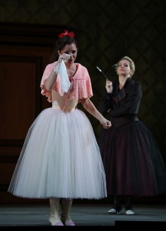 Als Regisseur Leo Muscato bei der Pressekonferenz von einer Theatertruppe sprach, die Rossinis Oper einstudiert, hegte ich die Befürchtung, neuerlich eine Form von Metatheater zu sehen zu bekommen, wie sie in letzter Zeit allzu häufig (und damit zu billig) eingesetztes Regiemittel ist. Zum Glück war dem nicht so, denn Muscato hatte den Figuren nur verschiedene Aufgaben zugeschrieben, die auf einer Bühne erfüllt werden müssen. Damit wurde Bartolo zum Chef der Truppe, Rosina die Primaballerina, Berta die gestrenge Ballettmeisterin, Basilio Korrepetitor, Fiorello der Konzertmeister und Figaro für alles andere zuständig, wie etwa Schminke, Perücken, Kostüme und Bühnenumbau.
