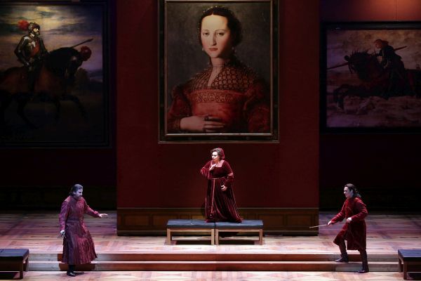 Hier handelt es sich um die 2014 in Salzburg gezeigte Koproduktion (Regie: Alvis Hermanis, Bühne: Hermanis und Uta Gruber-Ballehr, Kostüme: Eva Dessecker, Video: Ineta Sipunova). Diese in einer Bildergalerie spielende Interpretation war schon seinerzeit kein großer szenischer Erfolg. Wenn man bedenkt, dass die Bühne der Scala wesentlich kleiner ist als die des Großen Festspielhauses, kann man sich leicht vorstellen, dass eventuelle visuelle Effekte noch abgeschwächt wurden.