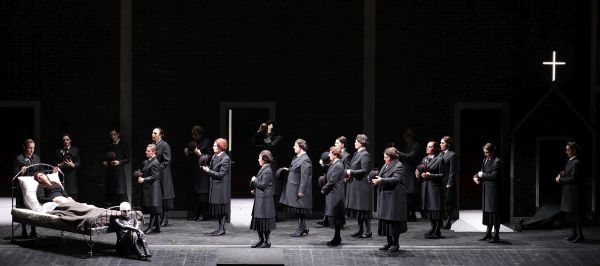 Zu dieser recht oberflächlichen Auslegung durch den Regisseur stand die musikalische Leitung von Lorenzo Viotti in stärkstem Gegensatz, denn der junge Maestro vermochte jegliches Abgleiten in den (hier mehr als in anderen Werken Massenets) hinter jeder Ecke lauernden Kitsch zu vermeiden und ließ das Orchester des Hauses mit süffigem Klang, aber frei von Sentimentalität aufspielen. Ich hatte den Eindruck, dass er mehr an diese Oper glaubte als Py. Marina Rebeka ist schon von ihrer glanzvollen Erscheinung her für die Titelrolle prädestiniert und gestaltete die Wandlung von der Sünderin zur Heiligen auch gesanglich sehr glaubhaft, wobei sie auch einige sehr exponierte Spitzentöne sicher bewältigte. Anstelle des Covid-Opfers Ludovic Tézier war als Athanaël der Amerikaner Lucas Meachem zu hören, dessen kräftiger Bariton über nicht allzu viele Farben verfügt, weshalb seine Attacken gegen das Laster ziemlich monoton ausfielen; seine Verzweiflung, als er sich seine Begierde nach Thaïs eingestehen musste, und bei ihrem Tod gelang da besser. Nicias, der bei Athanaëls Auftritt aktuelle Liebhaber der Kurtisane, wurde von Giovanni Sala szenisch eindrucksvoll verkörpert, doch fehlte es seinem Tenor an Fülle. Sein Französisch war außerdem verbesserungswürdig (jenes von Rebeka ausgezeichnet, das von Meachem passabel).