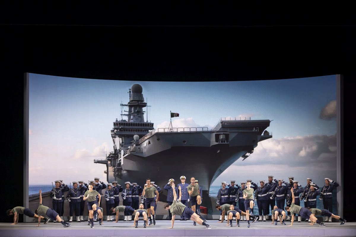 Für Robert Carsen war es das erste Mal, dass er sich mit dem Werk auseinandersetzte, und er hatte einen überzeugenden grundlegenden Einfall. Inspiriert von den zahlreichen (Trash)sendungen wie „Temptation Island“, wo junge Paare ihre Standhaftigkeit (in der Erwartung eines Geldpreises) einer Prüfung unterwerfen, verlegte der Regisseur die Handlung in ein TV-Studio (die Sendung trägt den Originaluntertitel des Werks „La scuola degli amanti“): Die beiden Paare Fiordiligi-Guglielmo und Dorabella-Ferrando nehmen an dem Bewerb teil, der von Don Alfonso als Showmaster und von Despina als seine Gehilfin moderiert wird. Das alles ist handwerklich hervorragend gemacht, denn Carsen belässt die vier Liebenden nicht im luftleeren Raum, sondern bevölkert die Szene mit Gleichaltrigen – sonst keine Freundin von hinzugefügtem Personal, bewunderte ich die Leistung der Mimen (Mädchen und Burschen in jeweils abgetrennten Räumen, die auch als Schlafsäle fungierten), die von Carsen mit ungeheurer Lebendigkeit geführt wurden. Die vom Regisseur gemeinsam mit Luis F. Carvalho (von letzterem stammten auch die Kostüme) gestaltete Bühne erhielt grandiose Unterstützung durch die Videos von Renaud Rubiano (auch diese waren ausnahmsweise nicht nur am Platz, sondern schufen spezielle Eindrücke, wie etwa den Flugzeugträger, der Guglielmo und Ferrando in den Krieg führen soll, oder den Swimmingpool, an dem sich die angebliche Vergiftung der beiden abspielt, oder die wunderbar kitschige Pseudoeheschließung).