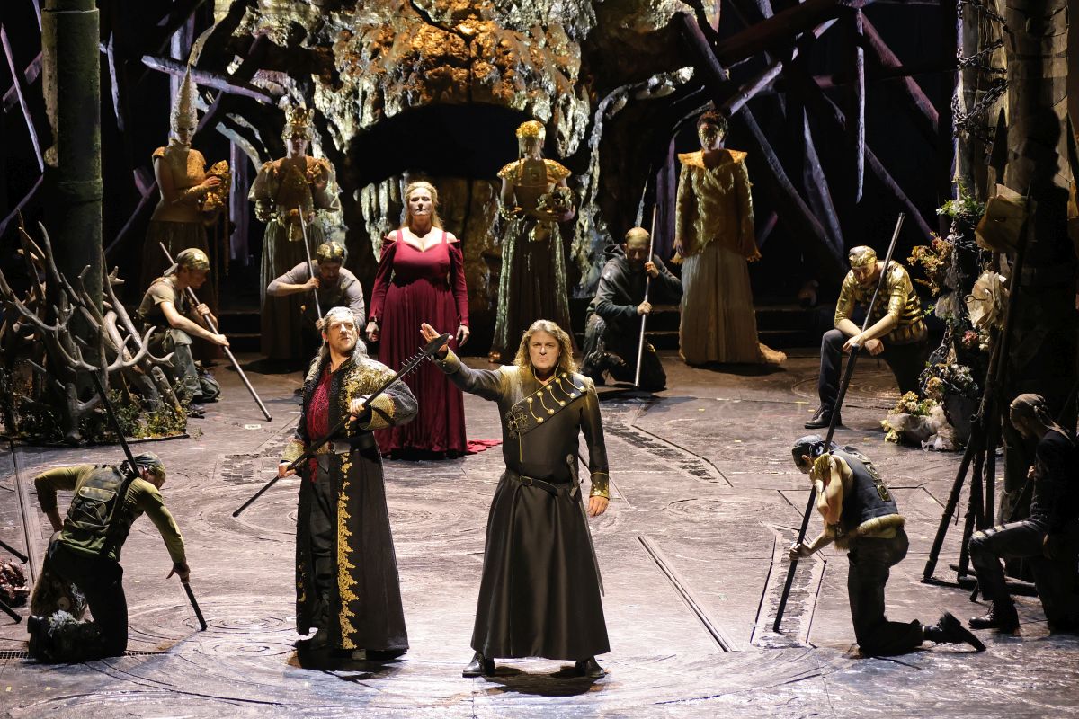 Wie bei den ersten drei Teilen dieser „Ring“-Produktion teilen sich auch hier Alexander Soddy und Simone Young die musikalische Leitung, der Engländer dirigiert die ersten drei Vorstellungen, die Australierin die letzten beiden. Soddy führte das konzentriert spielende Orchester des Hauses zu beeindruckender, manchmal leicht übersteuerter Klangfülle (Blech!). Insgesamt aber ein brillanter, überzeugender Goldklang. Der Dirigent dankte dem Orchester für seine Leistung, indem er den Publikumszuspruch gemeinsam mit diesem auf offener Bühne entgegennahm. Der wieder auf höchstem Niveau singende Herrenchor unter Alberto Malazzi ließ bedauern, dass er nur in diesem den „Ring“ beschließenden Abend seinen Auftritt hat.