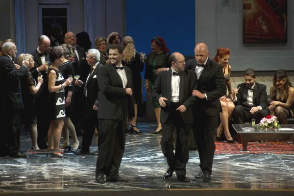 Die Koloraturen saßen ebenso wie sie schöne Legatobögen spann und ein inniges, zweistrophiges „Addio del passato“ bot. Für Ivan Ayon Rivas sprang Danilo Formaggia ein, der mit ausgezeichneter Technik vergessen ließ, dass sein Tenor nicht zu den schönsten gehört. Nur bei Alfredos Wutausbruch in Floras Salon kam sein lyrischer Tenor an Grenzen. Alessandro Luongo war ein gut phrasierender Germont (samt Cabaletta nach „Di provenza“) von gemessenem Auftreten, zu dem ein manchmal zu starker stimmlicher Nachdruck im Gegensatz stand. Als Flora ließ Carlotta Vichi einen angenehmen Mezzo hören, Marta Calcaterra war eine teilnahmsvolle Annina. Zuverlässig ergänzten Blagoj Nacoski (Gastone und Giuseppe), Roberto Gentili (Douphol und Commissionario), Claudio Mannino (Marchese) und Rocco Cavalluzzi (Dr. Grenvil). Der von Mauro Rolfi einstudierte Coro San Gregorio Magno bot eine gute Leistung und wies nach, wie sehr er sich von Jahr zu Jahr verbessert hat.