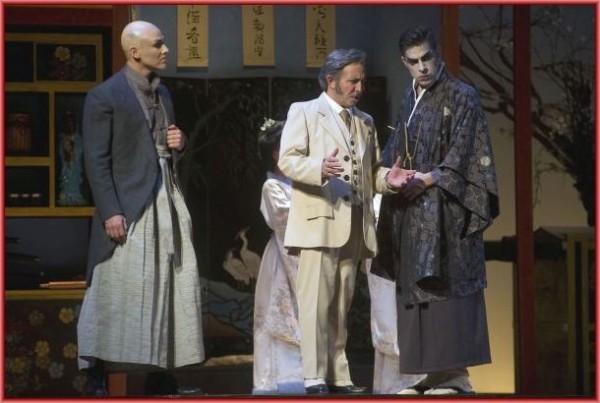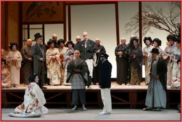 Damit wären wir bei der Regie von Renato Bonajuto, die im traditionellen Rahmen der wunderbar pastellfarbenen Ausstattung von Laura Marocchino auf allzu aufdringliches Trippeln der weiblichen Figuren verzichtete und die Tragödie der „kleinen Japanerin“ intensiv herausarbeitete bis hin zum selten so eindringlich gesehenen Selbstmord. Es war auch bewundernswert, wie es dem Regisseur gelang, die eher klein gewachsenen Interpreten von Pinkerton und Sharpless (aber vor allem natürlich den ersteren im 1. Akt) immer so zu gruppieren, dass das Gardemaß der Sopranistin nicht störte und es zu einem eindrucksvollen Liebesduett kam, obwohl sich die Partner nie im Stehen umarmten. Das nenne ich Handwerk im positivsten Sinn!