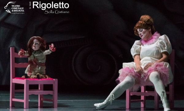 Seine Interpretation zielte aber weiterhin auf die Darstellung einer wirklich einem Libertin zuzuschreibenden Gruppe, auch wenn der Herzog sich in heutigen Klamotten zeigte. Wie in den letzten Jahren wiederholt zu beobachten war, wird auch hier der krankhaft possessive Charakter Rigolettos gegenüber Gilda unterstrichen, die im rosa Kleidchen inmitten ihrer Puppensammlung lebt. Viel Kontur erhält auch die Figur der Giovanna, die hin- und hergerissen ist zwischen ihrer Bestechung durch den Herzog und ihr Bewusstsein, was sie damit angerichtet hat, Gilda in dessen Arme zu treiben. Laura Cherici brachte das sehr gut zum Ausdruck. Konnte man die Präsenz von Monterones Tochter im 1. und 3. Bild als überflüssig empfinden, so wies doch das gleiche Kleid, das Gilda während ihres Liebestraums Caro nome anlegte, auf das parallele Schicksal der beiden Mädchen hin (Kostüme: Carla Ricotti).