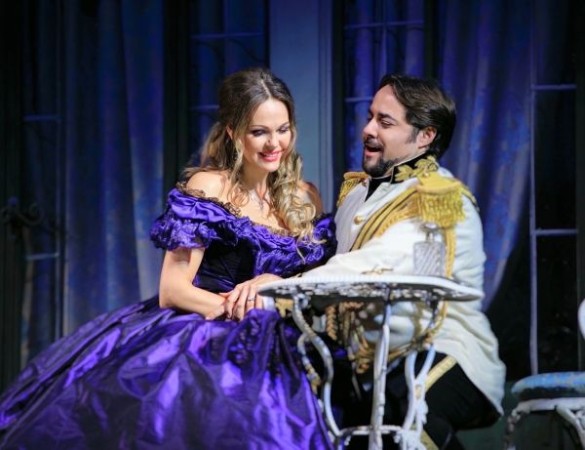 Cucchis Konzept bestand darin, jeden der vier Akte zu einer anderen Zeit spielen zu lassen: Der erste, wie vom Libretto vorgesehen, im 18. Jahrhundert, der zweite in der ersten Hälfte des 19., der dritte in den Zwanzigerjahren des 20. und der letzte schließlich in den Sechzigerjahren desselben Jahrhunderts. Vor allem der 2. und der 4. Akt hatten vom Medium Film profitiert. Der zweite, weil die Auseinandersetzung Adriana/Bouillon sich in zwei nebeneinader liegenden Logen abspielte und sozusagen Rücken an Rücken ausgetragen wurde. Im vierten, auf einer praktisch leeren Bühne spielenden, konnte ausgiebig auf Großaufnahmen zurückgegriffen werden, die dank der schauspielerischen Leistungen von Kristine Opolais in der Titelrolle und Nicola Alaimo als Michonnet zutiefst berührten. Diese Möglichkeiten waren im Theater, in dem die Inszenierung nun live zu sehen war, natürlich nicht gegeben. Zwischen den um Maurizio kämpfenden Damen gab es nun eine wenig eindrucksvolle Tür, die wie ein Behelf wirkte, und auch der 4. Akt (in dem Maurizios Stimme nur mehr als Halluzination erklingt) verlor an Intensität.