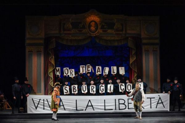 Diese Ereignisse gaben der Regisseurin Silvia Paoli die Idee ein, die Vorkommnisse während der Vorstellung durch eine Theatertruppe zu zeigen. Paoli gelingt dies ausgezeichnet, denn die Eingriffe des verzweifelten Regisseurs, wenn die Primadonna ohnmächtig wird, der Inspizient, der einem als Bären verkleideten, die Szene störenden Comprimario nachjagt, der (scheinbare) Ausfall der Interpretin der Titelrolle, die eine zaudernde Schneiderin, die immer schon singen wollte, auf die Bühne bringt, und vieles mehr sind nicht nur lustige Einfälle, sondern auch handwerklich bestens realisiert.
