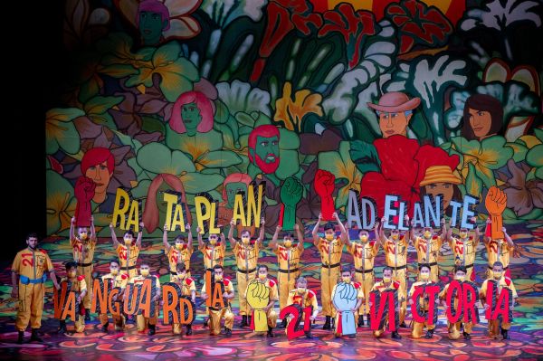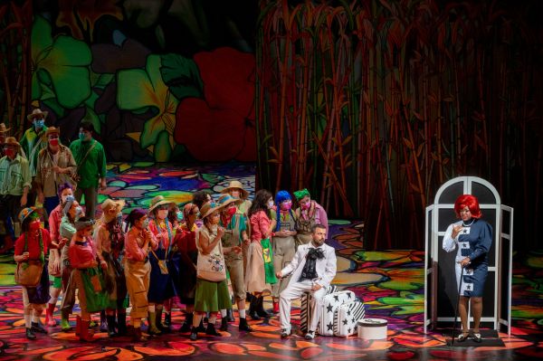Im 1. Akt zeigte das Bühnenbild von Angelo Sala mit wuchernden Pflanzen und Abbildungen naiver Malerei durchaus karibische Atmosphäre, während der 2. Akt in kaltem Schwarz-Weiß gehalten war und die frostige Atmosphäre in der adeligen Gesellschaft bestens illustrierte. Dazu gab es die stimmigen Kostüme von Maykel Martínez, der die Soldaten in orange Uniformen hüllte, auf der die Nummer des Regiments Nr. 21 zu lesen war, und für die Bauern die typische Kleidung von Feldarbeitern in heißen Ländern. Köstlich auch Marie im Fetzenlook und mit roten Zöpfen. Aufgeboten war auch der Trommler Ernesto López Maturell, der auf der Bühne wiederholt Kostproben der tollen Beherrschung seines Instruments gab. Die Bewegungsregie war überaus natürlich; es wurde geblödelt, aber nie chargiert.