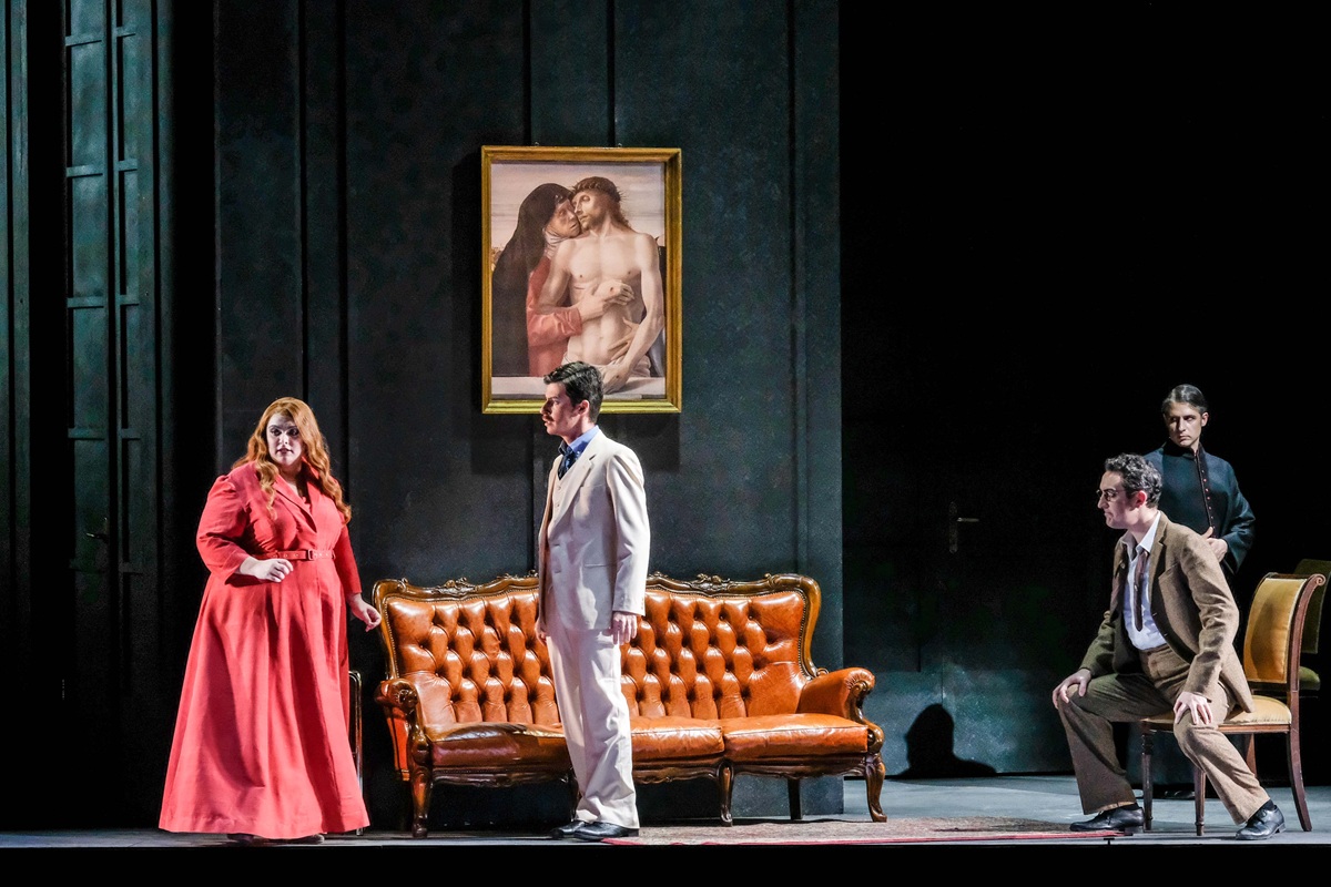 Mit Bühnen-Ehefrau und -Stiefsohn kann Marko Mimica am Premierenabend nicht ganz mithalten. Zwar verfügt der kroatische Bassbariton über eine wohlklingende Tiefe und großen Ausdruck, doch fehlt ihm das Düster-Dämonische, um mich als brutaler Ehemann zu überzeugen. Das hingegen gelingt Francesco Leone am zweiten Abend mühelos, so voller Kraft und Virilität ist sein imposanter, stolzer Bass.