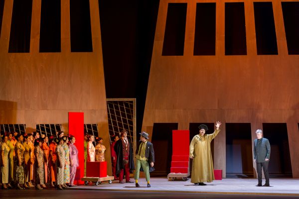 Mich hat verwundert, dass Busoni trotz seiner Abneigung gegen den Verismo sowohl von Turandot, als auch von Kalaf starke Ausbrüche in anspruchsvoll hoher Tessitura verlangte. Die Titelrolle wurde von Teresa Romano mit großer Höhenkraft, aber auch schönem, weichem Stimmmaterial gesungen. Die Sängerin, die ihre exzeptionellen Gaben bis vor Kurzem nicht immer adäquat eingesetzt hat, hat mit diesem Debüt (und der wenige Wochen zuvor in Turin gesungenen Puccini-Version) hoffentlich auf den richtigen Weg zurückgefunden. Der Waliser Timothy Richards ist Besitzer eines eher geraden Tenors, den er aber mit effektvoller Höhe einsetzte. Gabriele Sagona (Bass) war ein erheiternd enervierter Altoum, wie Kriefs Personenregie in beiden Opern überhaupt sehr gut funktionierte. Der georgische Bariton Gocha Abuladze sang einen verlässlichen Barak (der Kalaf erst auf die Anziehungskraft Turandots hinweist). Vittoria Lai gab mit angenehmem Sopran die Klage der Königinmutter von Samarkand wegen ihres hingerichteten Sohnes. Die Commedia dell’Arte wurde von Filippo Adami (Truffaldino/Tenor), Daniele Terenzi (Pantalone/Bariton) und Carlo Checchi (Tartaglia/Bariton) würdig vertreten. Ein Pauschallob den aus dem Chor rekrutierten 8 Doctores, die die Antworten auf die Rätsel zu begutachten haben. Die Albanerin Enkelejda Shkoza war Adelma, die in dieser Fassung Kalafs Namen kennt und ihn an Turandot verrät, um im Gegenzug keine Sklavin mehr zu sein. Das Happyend versäumt die Figur, weil sie sich auf die Suche nach einem Liebhaber begibt.