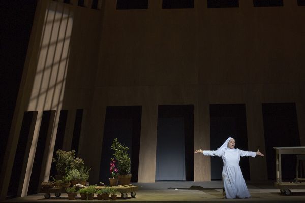 Wurde „Turandot“ in Sardinien erstmals gegeben, so war „Suor Angelica“ in Cagliari bisher in zwei Produktionen zu hören gewesen, und zwar 1974 und 1989 (aber nicht im Teatro Lirico, das erst 1993 eröffnet wurde). Für beide Werke war der französisch-italienische Regisseur Denis Krief verantwortlich, der auch für Bühnenbild, Kostüme und Beleuchtung zeichnete. Die grundsätzlich gleiche Szenerie in ihren futuristischen Zügen wurde durch die Lichtregie der jeweiligen Handlung angepasst und war für ein Märchenreich ebenso geeignet wie für die klaustrophobe Atmosphäre eines Klosters. Waren der Kaiser und seine Minister typengerecht gewandet, so zeigten sich Turandot, Kalaf und Adelma, Sklavin und Freundin der Prinzessin, in zeitloser Normalkleidung. Zu den Nonnengewändern bei Puccini gesellte sich die Zia Principessa in strengem Kostüm mit Hut, Handschuhen und Handtasche, womit sie auf die Fünfzigerjahre verwies.