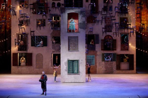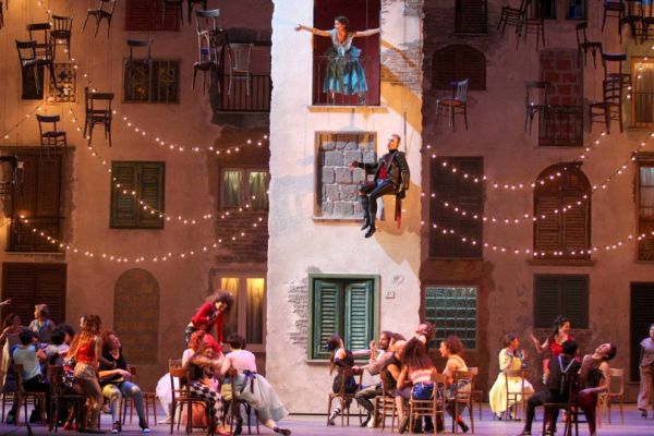 Ein mutiger Schritt also, die Saison 2014 mit einem faktisch unbekannten Werk zu eröffnen. Für die Realisierung wurde die sizilianische Regisseurin Emma Dante engagiert, und es muss gesagt werden, dass das sonst so lasche Publikum von Palermo mit seinem Jubel der Aufführung großen Erfolg bereitete. Grund dafür war eine für das Auge sehr erfreuliche Produktion, in der Dante mit ihrer formidablen Truppe von 30 Tanzschauspielern (wenn der Ausdruck gestattet ist) eine farbenfrohe, mediterrane Welt auf die von Carmine Maringola gestaltete Bühne (Kostüme: Vanessa Sannino) stellte. Das wirbelte und tobte (Bewegungsregie: Sandro Maria Campagna) vor architektonisch typischen, in gleißend südliches Licht getauchten Häusern, orangefarbene Bänder flatterten, orientalisch anmutende Röcke und bei den Herren nackte Oberkörper suggerierten ein pralles Straßenleben, wie es in München, wo das Libretto des Ernst von Wolzogen spielt, auch zur Sommersonnwendfeier so nicht stattfindet.