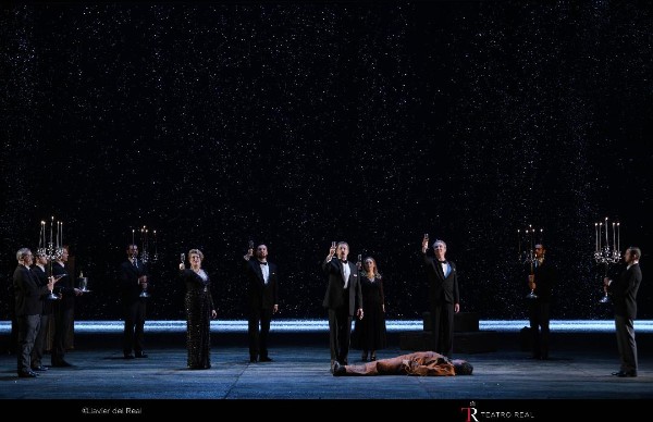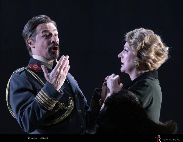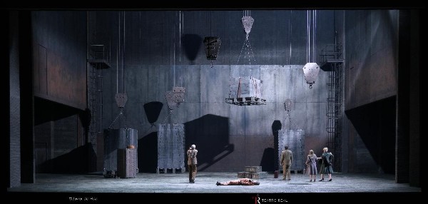 Nun setzte das Teatro Real seine „Rheingold“-Serie mit einer vor allem musikalisch äußerst eindrucksvollen 4. Vorstellung nach der Premiere am 17. Januar fort. Es feiert derzeit seinen 200. Geburtstag und nahm auch aus diesem Anlass die bekannte Kölner Produktion aus den Jahren 2000-2003 von Robert Carsen in sein Stagione-Programm. In einer Art Angelo Neumannscher Manier war sie auch schon in Venedig und Schanghai (Bericht im Merker 2010) zu sehen. Carsens Inszenierung setzt am konkreten Beispiel des Rheins auf das Öko-Thema der Zerstörung des Planeten durch den Menschen und ist deshalb auch nach so langer Zeit, trotz einiger innerer Widersprüche, immer noch aktuell – leider. Patrick Kinmonth war für die Bühne und die vorherrschenden, themenbedingt trist grau- und braungetönten Kostüme verantwortlich, mit einem mittlerweile schon überstrapaziert wirkenden Militär-Look Wotans als Vier-Sterne-General und seiner mit MPs bewaffneten Soldaten. Ian Burton gab dramaturgische Unterstützung.