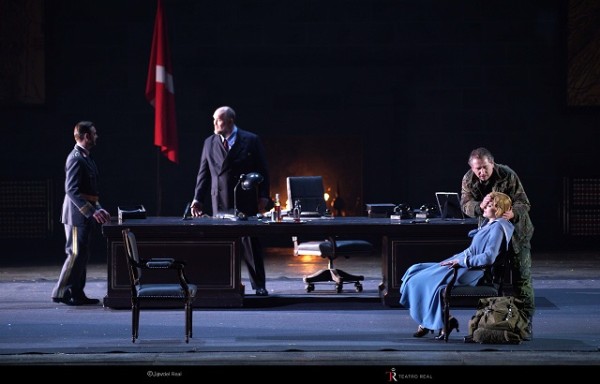Die von Oliver Kloeter für das Teatro Real überarbeitete Produktion wirkte, zumal mit dem ebenfalls neueinstudierten Lichtdesign von Guido Petzold, nach ihren immerhin um die 20 Jahre erstaunlich frisch und lebendig. Ob alles unbedingt in militärischer Ästhetik und immer wiederkehrenden Müllansammlungen und Nornen als Putzfrauen stattfinden muss, steht auf einem anderen Blatt. Robert Carsen sagte in einem Interview mit dem Teatro Real zwar, dass man bei jeder Wiederaufnahme, wie in den letzten drei Jahren in Madrid, an der Inszenierung arbeite. Da ich sie aber in Köln bei ihrer Entstehung von 2000 bis 2003 und 2011 in Schanghai erlebt habe, konnte ich keine wesentlichen Änderungen feststellen.