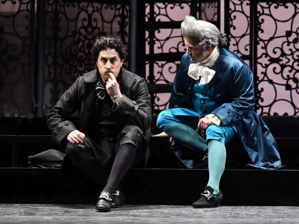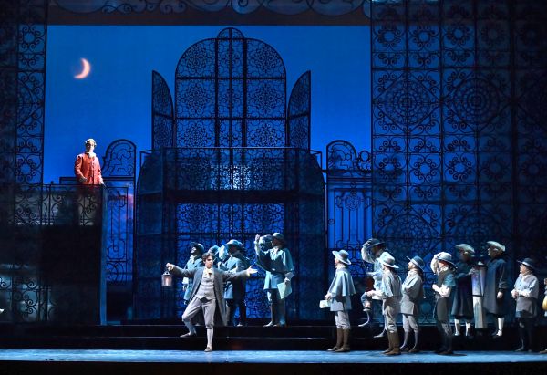 Die Wiederaufnahme der Regie des 2016 verstorbenen Beppe De Tomasi durch seinen ständigen Mitarbeiter Renato Bonajuto hatte ihre positiven Seiten vor allem in der lebendigen und sorgfältigen Personenführung von De Tomasis Adlatus. Dessen Aufgabe war nämlich gar nicht so einfach, denn das wunderhübsche Einheitsbühnenbild von Poppi Ranchetti zeigte ein maurisch inspiriertes, kunstvoll gearbeitetes Gitter, in dessen Innerem sich nur zwei Wendeltreppen befanden. Die wenigen Versatzstücke, wie etwa Rosinas Schreibtisch, wurden hinein- und hinausgetragen. Durch die zarte Zeichnung des Gitters sah das Publikum die Figuren weiterhin, weshalb sie also nicht einfach „abtreten“ konnten. Hier muss auch die ausgezeichnete Lichtregie von Andrea Borelli erwähnt werden. Sehr witzig gelöst war das Finale I, wo Figaro und Basilio den zur Statue erstarrten Bartolo zwischen ihnen hin- und herpendeln lassen. (Seit Ponnelles genialer Lösung dieser Szene ist einer Art Bewegungschoreographie offenbar nicht zu entkommen). Mit Ausnahme eines kanariengelben Kleides für Rosina im 1. Akt waren die Kostüme von Artemio Cabassi hübsch und kleidsam, für Almaviva, als er sich zu erkennen gibt, gar prachtvoll.