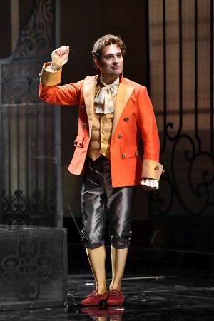 Die Wiederaufnahme der Regie des 2016 verstorbenen Beppe De Tomasi durch seinen ständigen Mitarbeiter Renato Bonajuto hatte ihre positiven Seiten vor allem in der lebendigen und sorgfältigen Personenführung von De Tomasis Adlatus. Dessen Aufgabe war nämlich gar nicht so einfach, denn das wunderhübsche Einheitsbühnenbild von Poppi Ranchetti zeigte ein maurisch inspiriertes, kunstvoll gearbeitetes Gitter, in dessen Innerem sich nur zwei Wendeltreppen befanden. Die wenigen Versatzstücke, wie etwa Rosinas Schreibtisch, wurden hinein- und hinausgetragen. Durch die zarte Zeichnung des Gitters sah das Publikum die Figuren weiterhin, weshalb sie also nicht einfach „abtreten“ konnten. Hier muss auch die ausgezeichnete Lichtregie von Andrea Borelli erwähnt werden. Sehr witzig gelöst war das Finale I, wo Figaro und Basilio den zur Statue erstarrten Bartolo zwischen ihnen hin- und herpendeln lassen. (Seit Ponnelles genialer Lösung dieser Szene ist einer Art Bewegungschoreographie offenbar nicht zu entkommen). Mit Ausnahme eines kanariengelben Kleides für Rosina im 1. Akt waren die Kostüme von Artemio Cabassi hübsch und kleidsam, für Almaviva, als er sich zu erkennen gibt, gar prachtvoll.