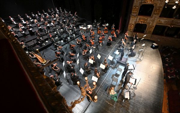 Da das Schlechtwetter eine Wiederholung des Requiems nach zwei Tagen verhindert hatte, musste die konzertante Aufführung von „Ernani“ doch noch ins Teatro Regio verlegt werden, wo die behördlichen Hygienevorschriften schneller als geplant umgesetzt wurden (für das Publikum bestehen sie im Parkett aus Plastikschilden, die jeweils zwei Plätze trennen).